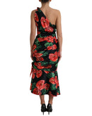 Dolce & Gabbana Black Shiny Silk Floral Print Draped Dress