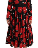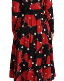 Gorgeous brand new with tags, 100% Authentic DOLCE & GABBANA black and red silk-blend Sicily bags print dress features a round neck, a concealed rear zip fastening, long sleeves, an all-over print, a fitted waist, a flared skirt, a mid-length and a Bag Devotion decorative patch.