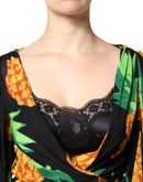 Dolce & Gabbana Black Silk Pineapple Draped Print Wrap Dress