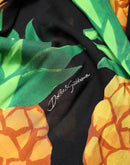 Gorgeous brand new, 100% Authentic Dolce & Gabbana wrapped dress. Featuring a sultry surplice neckline, this chic black dress is adorned with a vibrant pineapple print that’s perfect for making an impression. The long puff sleeves and ruffle tie cuffs add a romantic touch, while the side tie closure ensures a flattering fit.