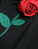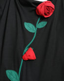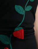 This stunning sheath midi dress is crafted from luxurious black wool and features an elegant sleeveless design with striking 3D red rose applique embroidery down the front. Tailored for a sophisticated fit, this piece highlights feminine elegance with a romantic touch, perfect for both formal occasions and evening wear.