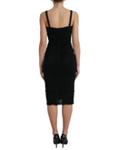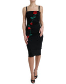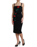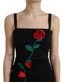 Dolce & Gabbana Black Wool Sleeveless Rose Applique Dress