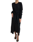 Dolce & Gabbana Black Wool Wrap Sheath Midi Gown Dress