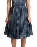 Dolce & Gabbana Blue Dotted Cotton A-Line Gown Dress