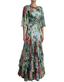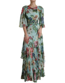 Dolce & Gabbana Blue Floral Print Tiered Long Maxi Dress