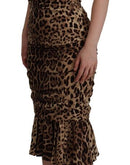 Dolce & Gabbana Brown Leopard Print Ruched Midi Dress