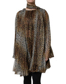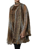 Dolce & Gabbana Brown Leopard Print Scarf Collared Chiffon Dress