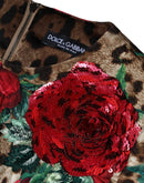 Dolce & Gabbana Brown Leopard Red Roses Cotton A-line Dress