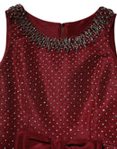 Gorgeous brand new with tags, 100% Authentic Dolce & Gabbana gown, crafted in Italy from fine silk. This elegant sleeveless dress features a rich burgundy hue, adorned with intricate beaded embellishments along the neckline and bodice for a glamorous sparkle. The design is complemented by a flattering fitted waist, accentuated with a silk bow detail, and a voluminous floor-length skirt that ensures a sophisticated silhouette.