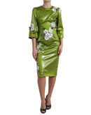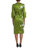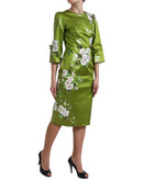 Dolce & Gabbana Green Floral Embellished Sheath Midi Dress