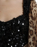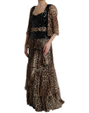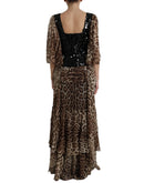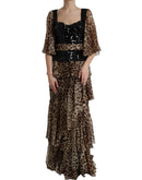 Dolce & Gabbana Leopard Print Silk Sequin Ruffle Maxi Dress