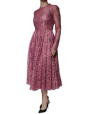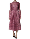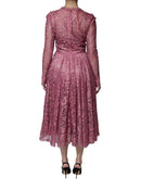 Dolce & Gabbana Pink Floral Lace Long Sleeve Midi Dress