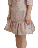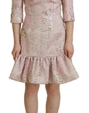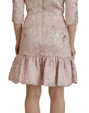 Dolce & Gabbana Pink Jaquard 3/4 Sleeve Sheath Midi Dress