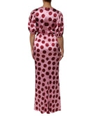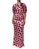 Dolce & Gabbana Pink Red Polka Dot Silk Satin Maxi Gown Dress