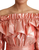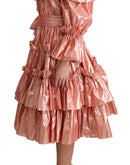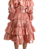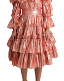 Dolce & Gabbana Pink Ruffled Dress Silk Cotton Gown Dress