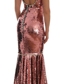 Dolce & Gabbana Pink Sequined Sheath Crystal Dress Gown