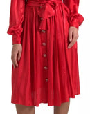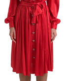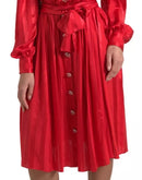 Dolce & Gabbana Red Button Down Belted Midi Satin Silk Dress