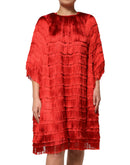 Dolce & Gabbana Red Silk Tiers Fringe Shift Knee Length Dress