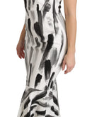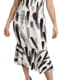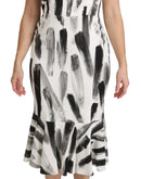 Dolce & Gabbana White Black Printed Sheath Midi Viscose Dress