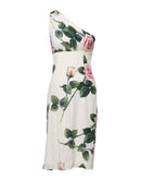 Dolce & Gabbana White Floral One Shoulder Sheath Midi Dress