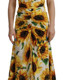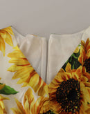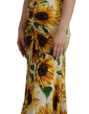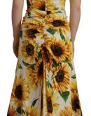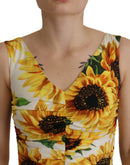 Dolce & Gabbana White Sunflower Print Sheath Midi Silk
