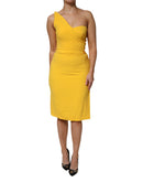 Dolce & Gabbana Yellow One Shoulder Side Slit Midi Dress