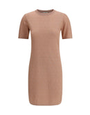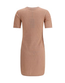 Fendi’s midi Dress is a celebration of elegance and femininity with a distinctive twist. Featuring a fitted silhouette, it features a crew neck and short sleeves for an essential and refined look. Made from a blend of cotton and viscose, it is embellished with the iconic all-over micro FF pattern in a delicate light pink hue. Small side slits and a ribbed hem complete the design, adding comfort and modernity to a garment perfect for any occasion.