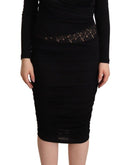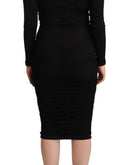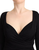GF Ferre Black Long Sleeves Sweetheart Neck Midi Dress