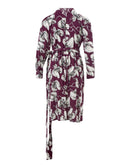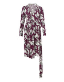Printed cross-over dress in purple by Lardini. long sleeves with buttons, fabric belt fastening, gathered waist Composition: 100% Viscose-Sku inside:23FE259