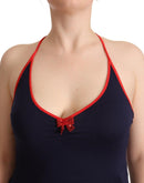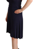 Roccobarocco Navy Blue Sleeveless Halter Sheath Midi Dress