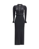 Self-Portrait’s long Dress is the ideal choice for casual, feminine elegance. Perfect for any occasion, it is made of stretch viscose that gently follows the lines of the body. The preppy design is enhanced with gold buttons and ruffles on the cuffs, while the side slit adds a sensual and contemporary touch. Front button closure and true-to-size fit, complement with ballet flats for a chic, relaxed evening look.