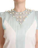 Sergei Grinko Multicolor Faux Pearl Sleeveless Shift Midi Dress