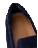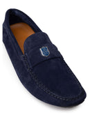 Bally Blue Suede Loafers with Logo. In blue suede, rounded toe, insole with logo, applied metal logo. Segmented rubber outsole. Size 8.5EU – 43IT
