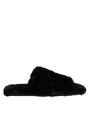 Dolce & Gabbana Black Polyester Velvet Slides Slipper Shoes