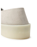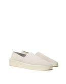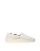 Fear of God Light Grey Suede Loafers with Rubber Sole. Round toe, suede upper, wide rubber outsole with transparent effect