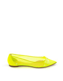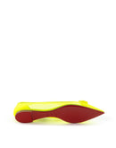 Christian Louboutin Fluo Yellow Mesh Pointed Toe Ballerina. Pointed toe, with tone-on-tone bow on the front, leather detail on the back, red outsole.-InteriorSku:24MAR08