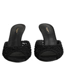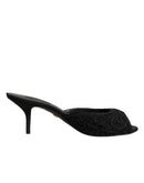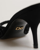 Dolce & Gabbana Black Embroidered Slip On Heels Slides Shoes