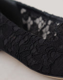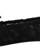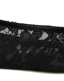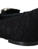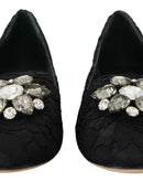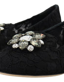 Dolce & Gabbana Black Taormina Lace Crystals Flats Shoes