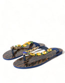 Dolce & Gabbana Blue Crystals Flats Sandals Beachwear Shoes