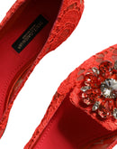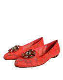 Dolce & Gabbana Coral Lace Crystal Ballet Flats Loafers Shoes