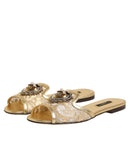 Dolce & Gabbana Gold Devotion Lace Flats Slip On Sandals Shoes