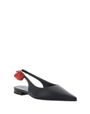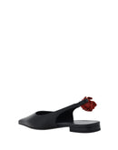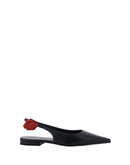 Leather Ballerinas by Magda Butrym, elongated toe, slingback at back with 3d floral applique detail, flat sole, logo-embossed insole.
