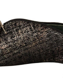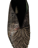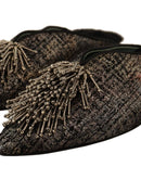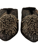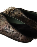 Paola D'Arcano Gold Jacquard Leather Embellished Slip On Shoes