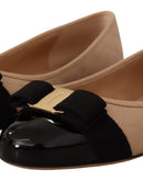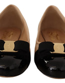 Salvatore Ferragamo Beige and Black Nappa Leather Ballet Flat Shoes