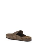 The Mellow Suede Mules By Tory Burch offers a sleek and elegant design. With a round toe, a metal buckle with iconic logo applique on the front and a flat sole, it ensures comfort and style. The branded insole adds a distinctive touch, making it perfect for casual and sophisticated looks.
