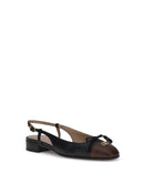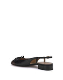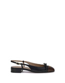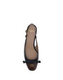 Valentino Garavani’s Valet Du Roi Ballerinas are a sleek and sophisticated interpretation of the classic slingback style. Closing at the back via an adjustable buckle, they feature a slightly squared toe and a block heel for a comfortable, stable walk. A bow on the front adds a touch of femininity, while the golden plaque with the brand’s iconic logo applied to the front underscores their luxury and sophistication.
