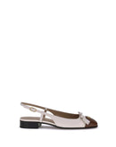 Valentino Garavani’s Valet Du Roi Ballerinas are a sleek and sophisticated interpretation of the classic slingback style. Closing at the back via an adjustable buckle, they feature a slightly squared toe and a block heel for a comfortable, stable walk. A bow on the front adds a touch of femininity, while the golden plaque with the brand’s iconic logo applied to the front underscores their luxury and sophistication.