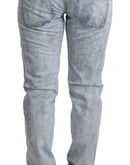 Acht Light Blue Washed Cotton Folded Hem Denim Trouser