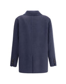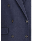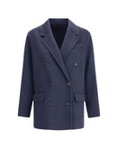 Brunello Cucinelli’s Caban Jacket is an elegant and refined garment that blends tradition and modernity. The peaked lapels and double-breasted front closure give it a classic and sophisticated feel, while the two patch pockets on the front with flaps add functionality and style. The back vent gives more freedom of movement, completing the design with a dynamic touch. Perfect for a chic and timeless look.