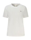 Embrace timeless style with a twist in this Calvin Klein crew neck T-shirt. Crafted from pure cotton for unparalleled comfort, its sleek white silhouette is elevated by the iconic logo delicately embroidered for that touch of elegance. Whether you’re dressing up for a casual outing or layering for an evening look, this versatile piece will serve as a statement in your wardrobe.